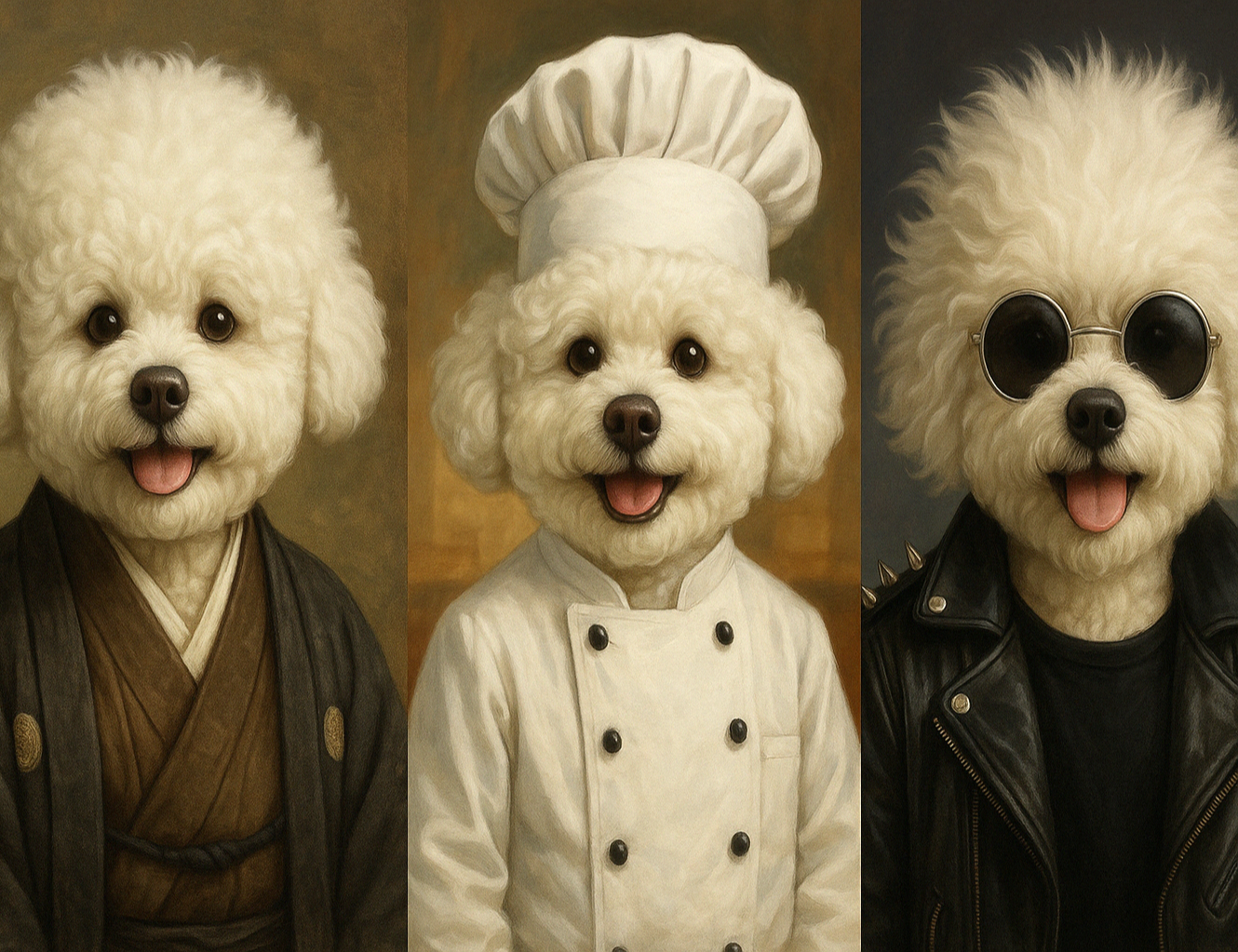 AI를 활용해 반려동물을 사람처럼 꾸미거나 특정 직업, 테마에 맞춰 캐릭터화하는 것을 말해요. 예를 들어, 요리사 마루, 전통복 차림의 마루, 펑크 스타일 마루 등 단순히 '귀엽다'를 넘어서, 스토리가 있는 이미지로 만들어주는 것이 매력 포인트입니다.
